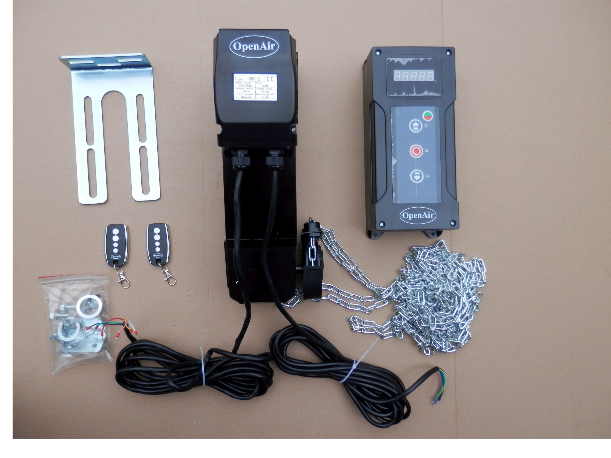 Zestaw automatyki G50-2 do bram segmentowych przemysłowych i garażowych o max. powierzchni do 10m2, zasilany napięciem 230V. W zestawie napęd do bramy G50-2, centrala, mechanizm awaryjnej obsługi ręcznej pozwalający za pomocą łańcucha otworzyć/zamknąć bramę w przypadku braku prądu, przewody połączeniowe, elementy montażowe, 2 piloty, instrukcja. Napęd przystosowany jest do wału o średnicy 25,4mm (1″).